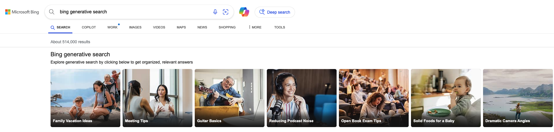 Bing's generative search combines traditional search methods with both large and small language models (LLMs and SLMs), dynamically matching millions of sources to generate search results. To explore this feature, Search Engine Land encourages U.S. users to type "Bing generative search" into the search bar, which will present a carousel of sample queries. From there, a "deep search" button allows users to leverage the new AI-powered features.