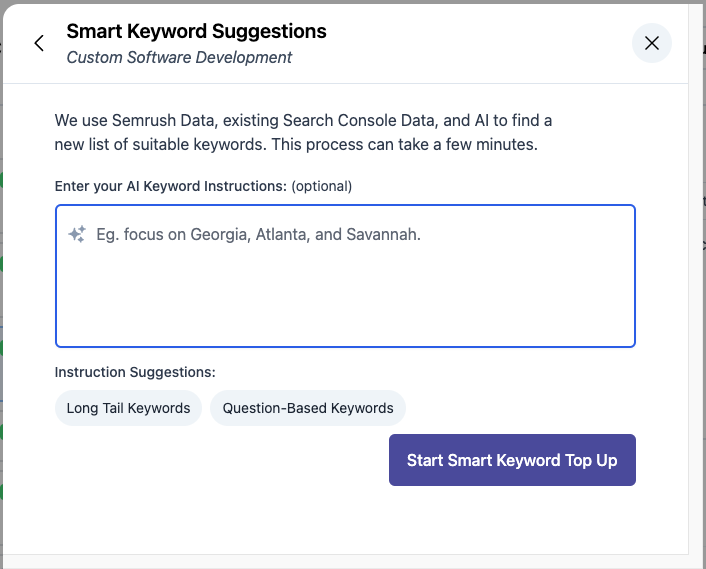 As Google’s algorithms increasingly prioritize expertise and specialization, having a focused keyword strategy is crucial. With Smart Keyword Top-Up, your agency can zero in on the terms that matter most to your clients—boosting visibility and results.